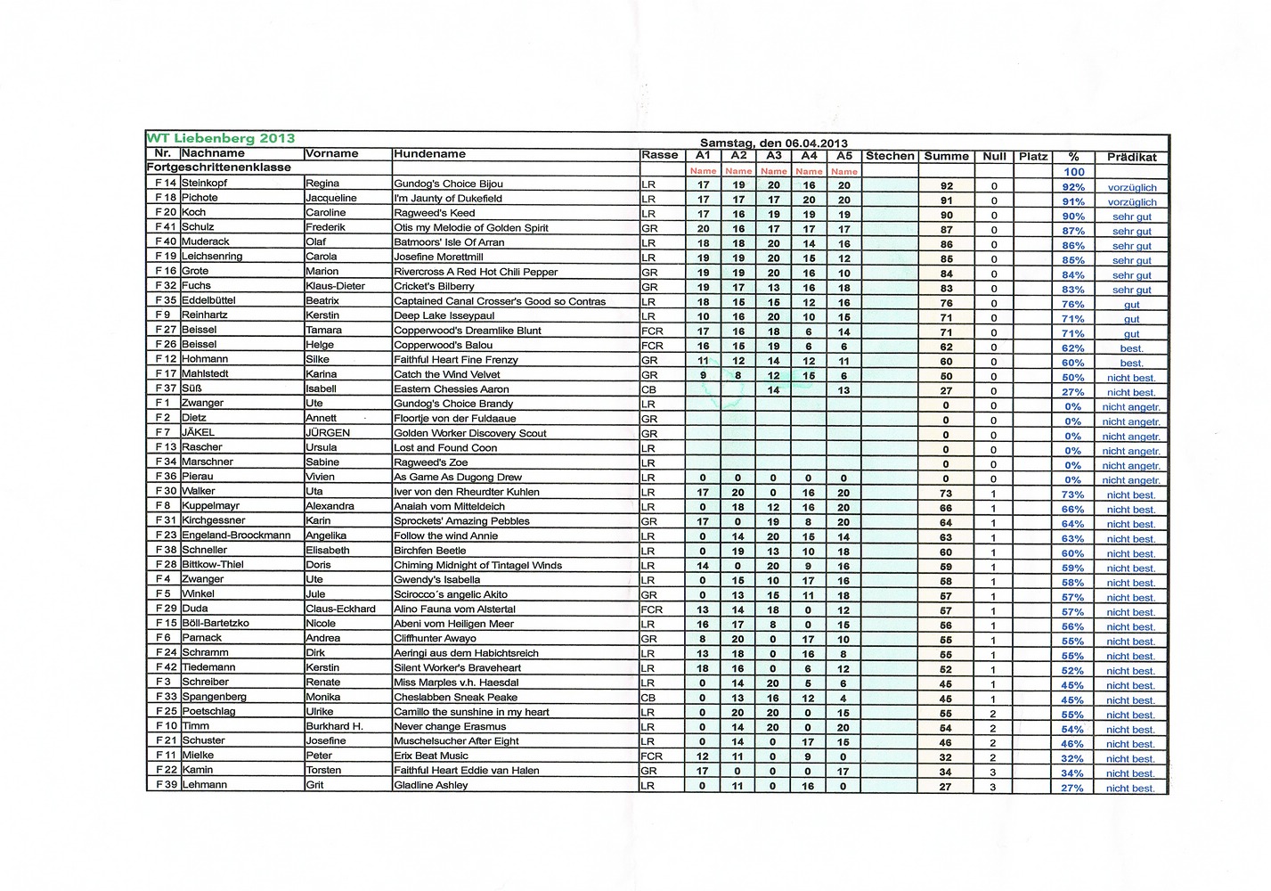 Die erste und die letzte Aufgabe sind seine Nullen. Völlig aufgeregt gehts zum ersten Blind und Frauchen und Hund haben sich noch nicht runtergefahren....